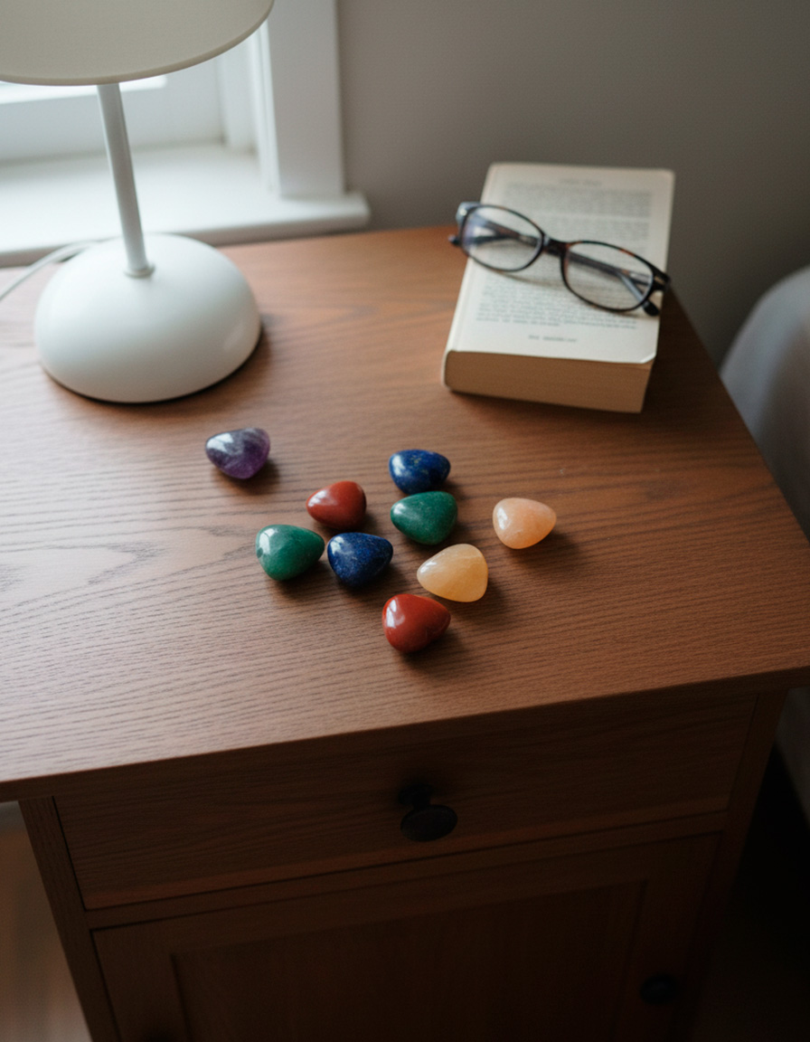 Esse kit possui pedras dos Chakras, que em sânscrito, significam roda, círculo. São centros de luz e energia ancorados no corpo etéreo do indivíduo. Governam o fluxo de energia Divina enviada para a manifestação dos quatro corpos inferiores do ser humano. Existem sete Chakras principais maiores, que correspondem aos sete raios.