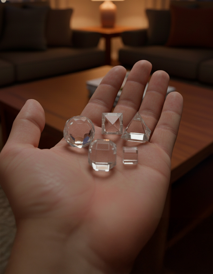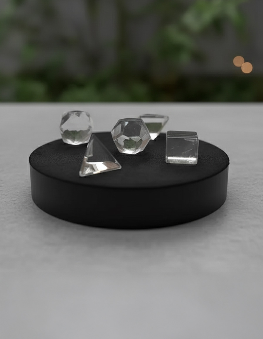 Nós, que buscamos um pouco mais de harmonia, sabemos que a resposta raramente está no barulho lá fora. Ela está em sintonias mais sutis. Foi essa busca que me levou a redescobrir uma sabedoria antiga, algo que combina a pureza da Terra com a matemática do Universo: os Sólidos Platônicos em Cristal de Quartzo puro.